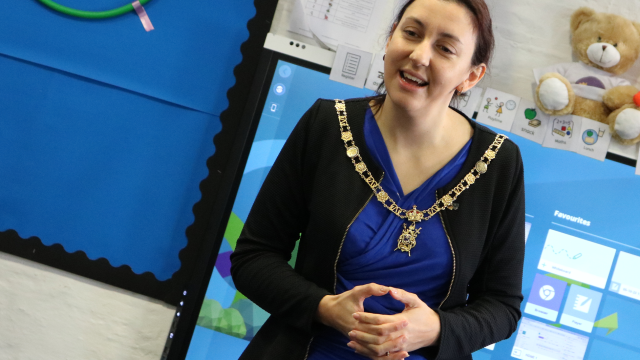 The Lord Mayor of Portsmouth Councillor Hugh Mason, the Lady Mayoress Marie Costa, and Councillor Suzy Horton the Cabinet Member for Children, Families…