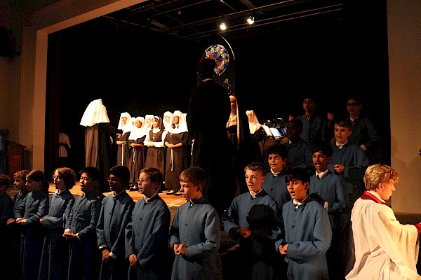 Unsurprisingly 20 nun costumes had been hard to find or get made, so we had hired them from a local company in Great Dunmow. The effect was worth it and by the end of the dress rehearsal, we were feeling delighted, hopeful, and excited about opening night, Tuesday the 21st of November.