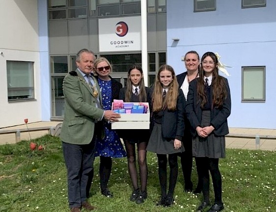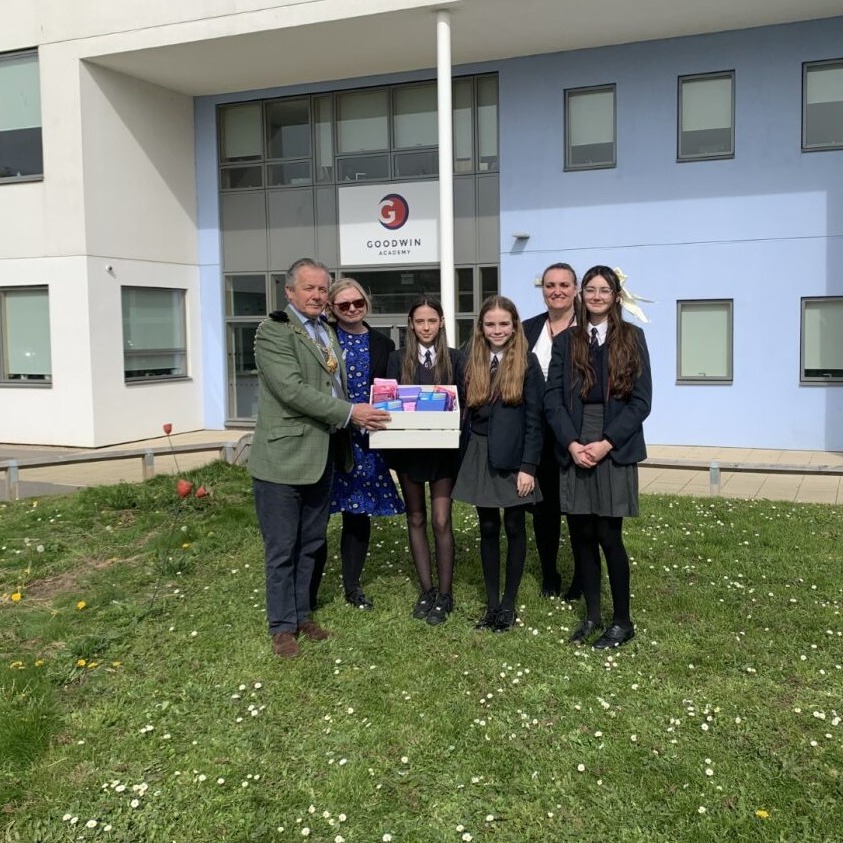 In March 2024, the Worshipful Town Mayor of Deal, Cllr Oliver Richardson, and Town Clerk Lorna Crow visited Goodwin Academy to deliver a selection of the donated period and hygiene products to the school as well as to local charity, United Families UK.