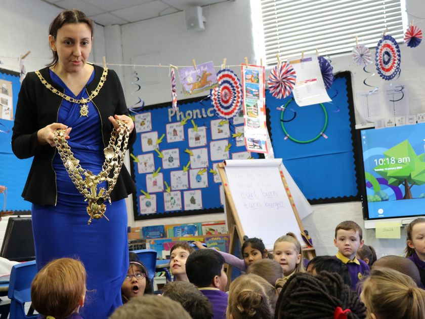 The Lady Mayoress of Portsmouth delivered a talk to inspire children in Year 1 to talk about what it means for her husband to be the Lord Mayor, with her support as Lady Mayoress.