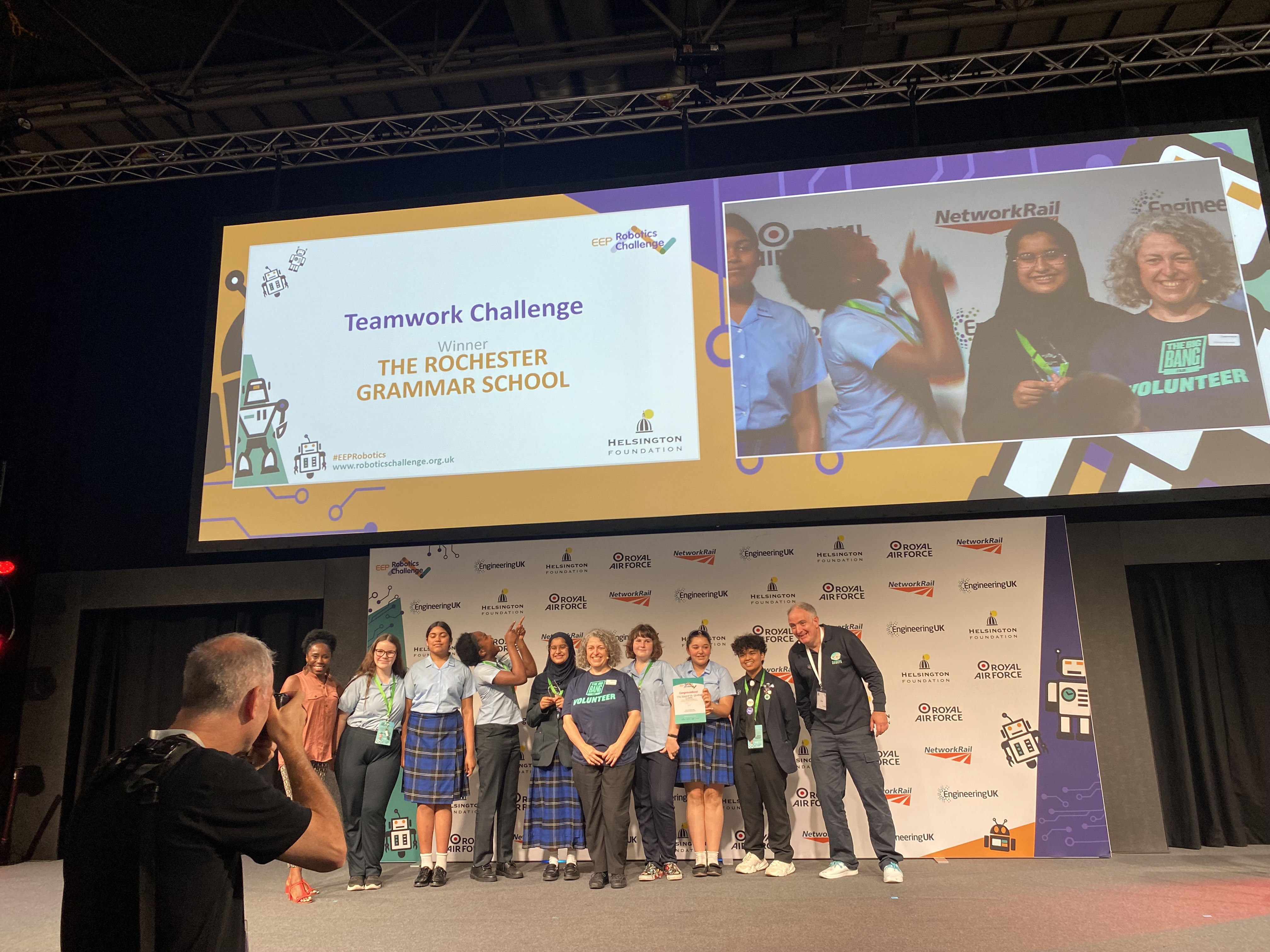 Event organiser, Sarah Pinkey was very taken with our team of students, so much so that she encouraged STEM professionals from the stalls at “The Big Bang Event” to come and speak at length with them. Rochester Grammar school is proud to be one of three all-girls schools to participate in the final and the only one to win an event. To celebrate the school’s successes and praise the team’s incredible demeanour throughout the competition, they were featured on the official Women In Engineering and Women In Robotics Instagram pages and were highlighted by name in the event’s official Twitter feed, Raising Robots.