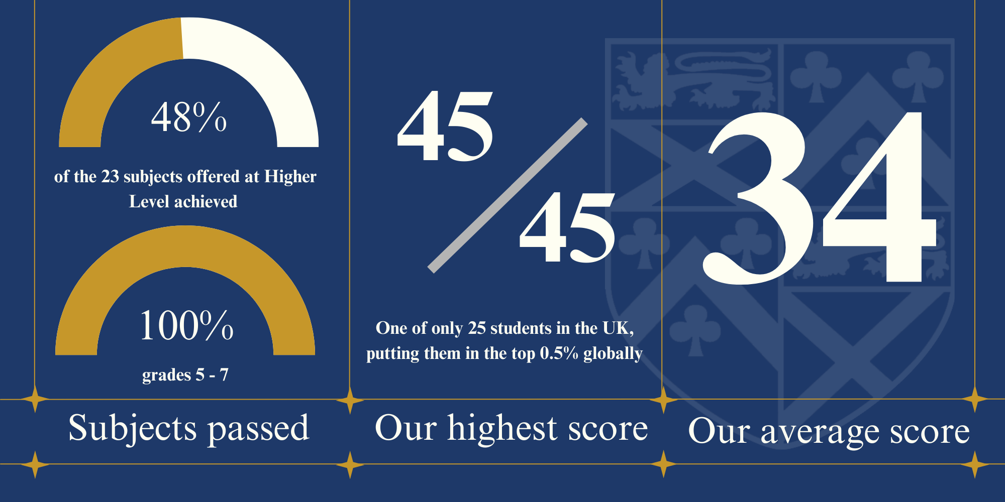 48% of the 23 subjects available to study at Higher Level achieved 100% grades 5-7 and this statistic was replicated among the Standard Level subjects, demonstrating the IB expertise within the school.