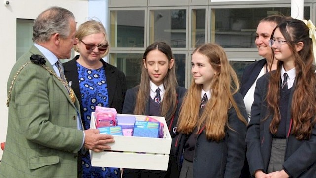 The Lord Mayor of Portsmouth Councillor Hugh Mason, the Lady Mayoress Marie Costa, and Councillor Suzy Horton the Cabinet Member for Children, Families…